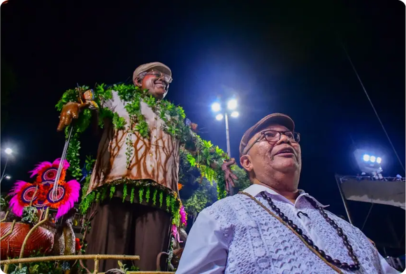 E na ala musical, Joãozinho Gomes, representando a composição do enredo e Patrícia Bastos, cantora amapaense, deram voz à nossa identidade musical.