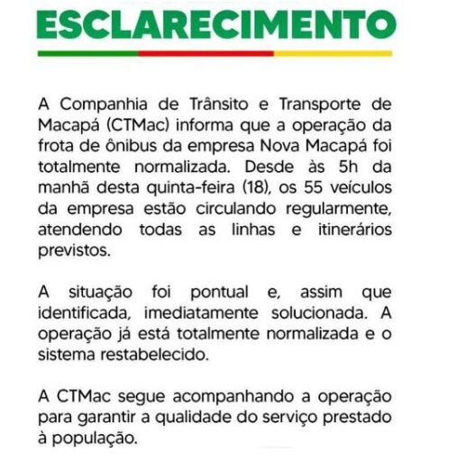 A companhia de Trânsito e Transporte de Macapá (CTMac) se pronunciou sobre a retirada de circulação demais da metade dos ônibus da empresa Nova Macapá, na noite de quarta-feira,17.