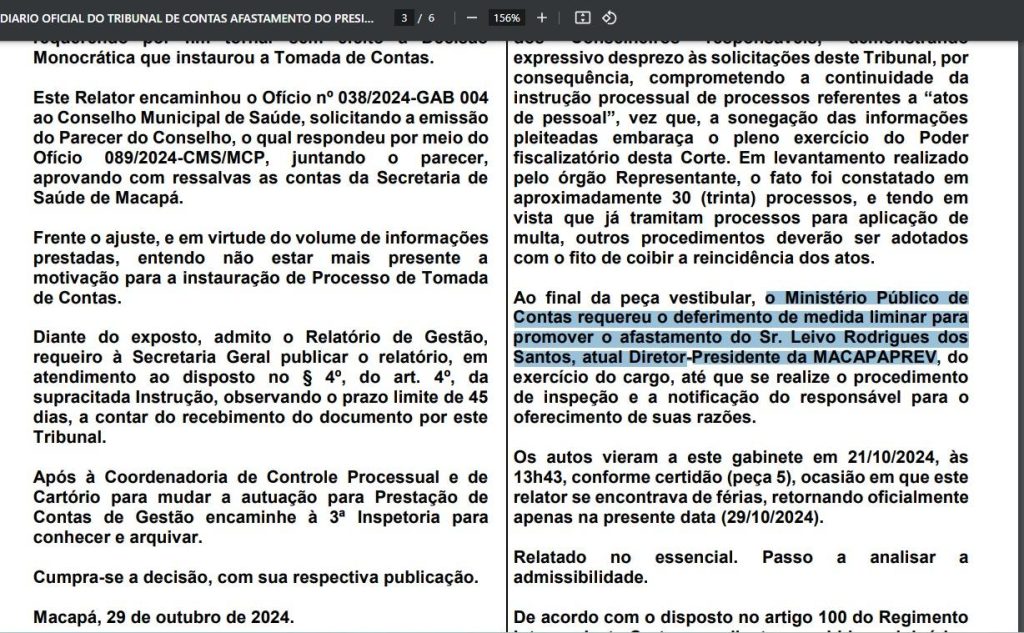 Leivo Rodrigues dos Santos ficou na Macapá Prev como vice-diretor presidente. A medida cautelar foi expedida para garantir que a apuração não sofresse interferências.